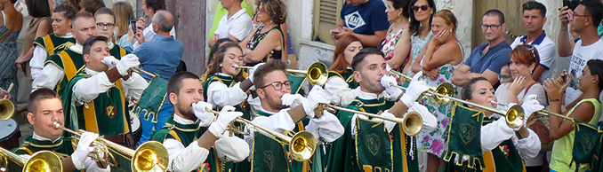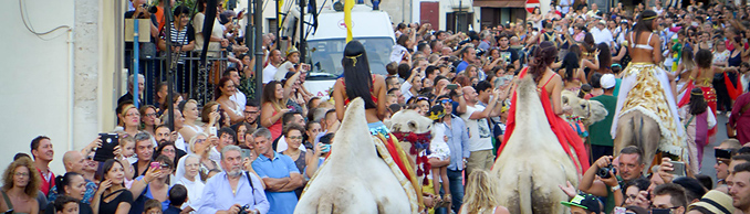 We came to Puglia at exactly the right time to experience the Palio in Oria, a great medieval festival for which the whole town is up and about. Magnificent processions in the streets of Oria and exciting contests among Oria's four "reones" (districts) Castello, Judea, Lama and San Basilio last for three days. A thousand or so locals, dressed in colourful, historical costumes fill the streets to feature scenes of Puglia's past, the sound of fanfares and drumbeats goes on for hours. This impressive spectacle is viewed by thousands and thousands of locals and visitors coming from other places. If we remember rightly, everyone of the Masseria Palombara is supporting the district Judea, except Angelo. The winner of this year's Palio was the district Judea, so we could admire Francesca in her gorgeous dress leading the recessional parade after the final contest in the castle of Oria. What a wonderful experience.