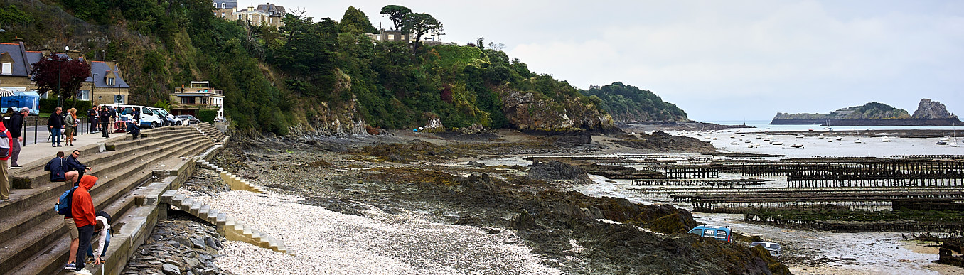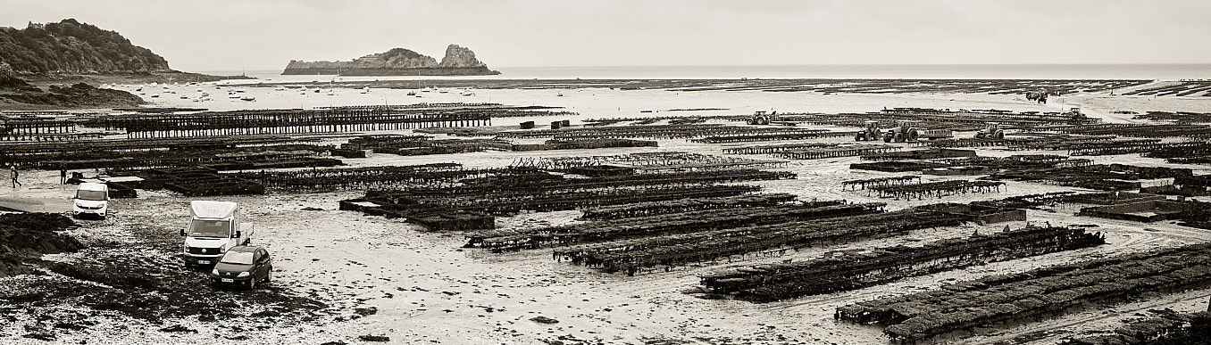 When approaching Cancale it was low tide and we could see oyster beds as far as the eye can see and boats were sitting tilted to the side on the sandy bottom of the harbour Port de la Houle. This small seaside town at the beginning of Brittany’s Emerald Coast has been farming oysters since the Roman times. Once at Port de la Houle, one should not miss the Marché aux Huîtres, the oyster market of Cancale behind the second jetty. At the market you can enjoy the finest Cancalaises oysters and follow the established ritual, which is slurp the oysters and throw back the shells onto the beach. We were not the first doing this and certainly not the last ...
