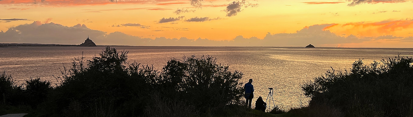 From that point, a magnificent panorama opens up before you: from the costal bay area, where the rivers Sélune and Sée meander in a silver glare to empty into the bay and a variety of birdlife can be observed, all the way to Cancale in the Brittany, taking in Mont Saint-Michel bay along the way. The mount of Mont-Saint-Michel looms around four or five kilometres away and if you’re lucky, Mont-Saint-Michel presents itself during a spectacular sunset with dramatic cloud formations - and on mist-free evenings the coastline lights up in a beautiful dusk glow.