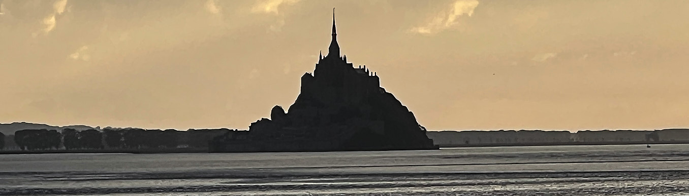 This rocky outcrop located at the east side of the Mont Saint-Michel Bay is a small headland that offers breathtaking views, when during the high tides Mont-Saint-Michel seems to take a bath in the sea, lit by the warm orange Sun setting at the horizon behind.